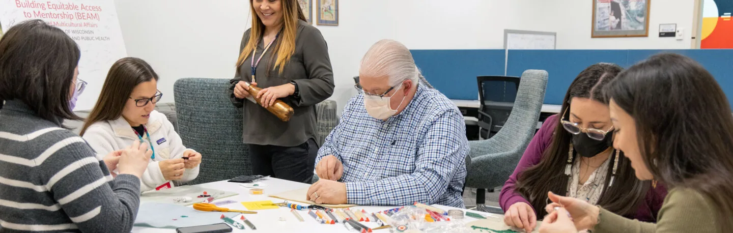 The UW School of Medicine and Public Health Native American Center for Health Professions (NACHP) was founded in 2012 with the mission to improve the recruitment, retention and graduation rates of Native American health professional students and promote health education, research and community-academic partnerships with Native communities. Since its inception, the program has grown significantly from serving five Native American students and faculty to more than 50 Native American health professions students enrolled across the UW campus and hosting an advisory council of more than 25 Native American health professionals.